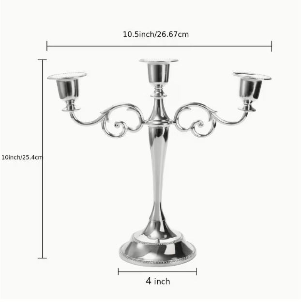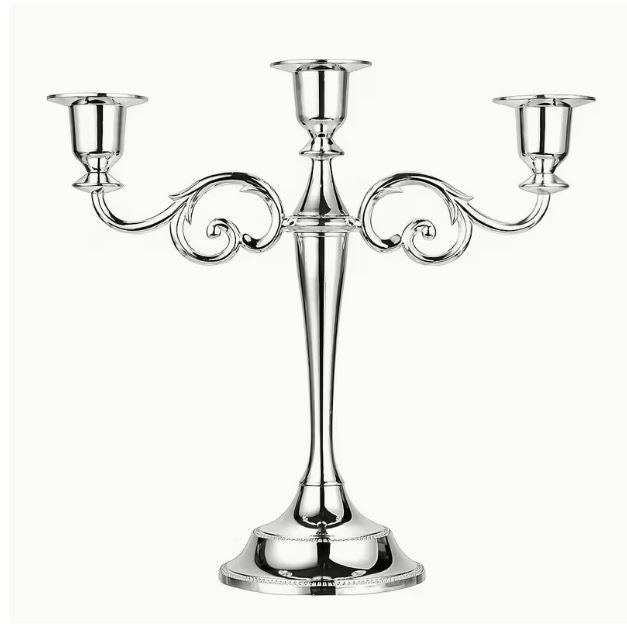 Renta de candelabro para decoración plateado.